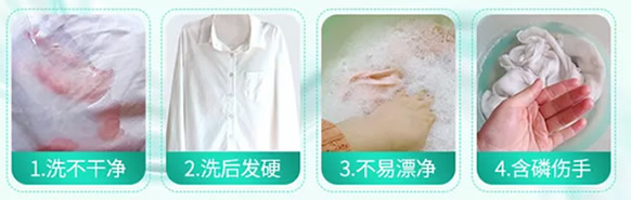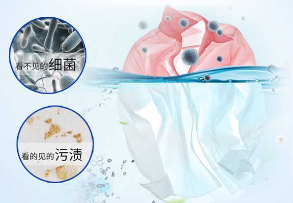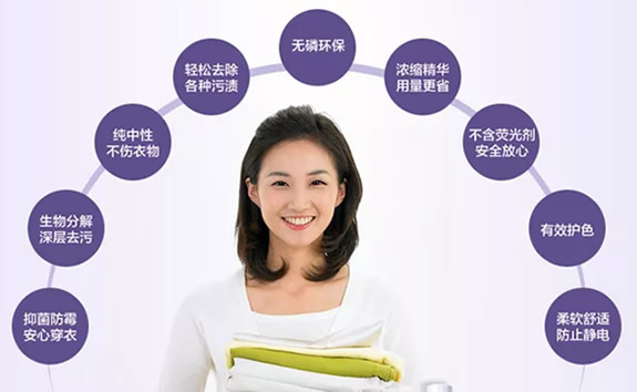 洗涤体验:低温易溶、低泡易漂、节能省水、不伤手、衣物柔顺、消毒抑菌无残留。