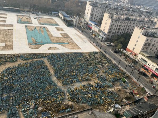 12月17日,实地走访发现,在该小区南门东侧一片未施工的工地上,各类共享单车电单车密集堆放,数量约有近万辆。其中涉及美团、哈啰、青桔等多个常见品牌,不少车辆已出现车轮变形、车身刮擦凹陷等情况。它们无序叠放,形成规模较大的废弃单车聚集区。